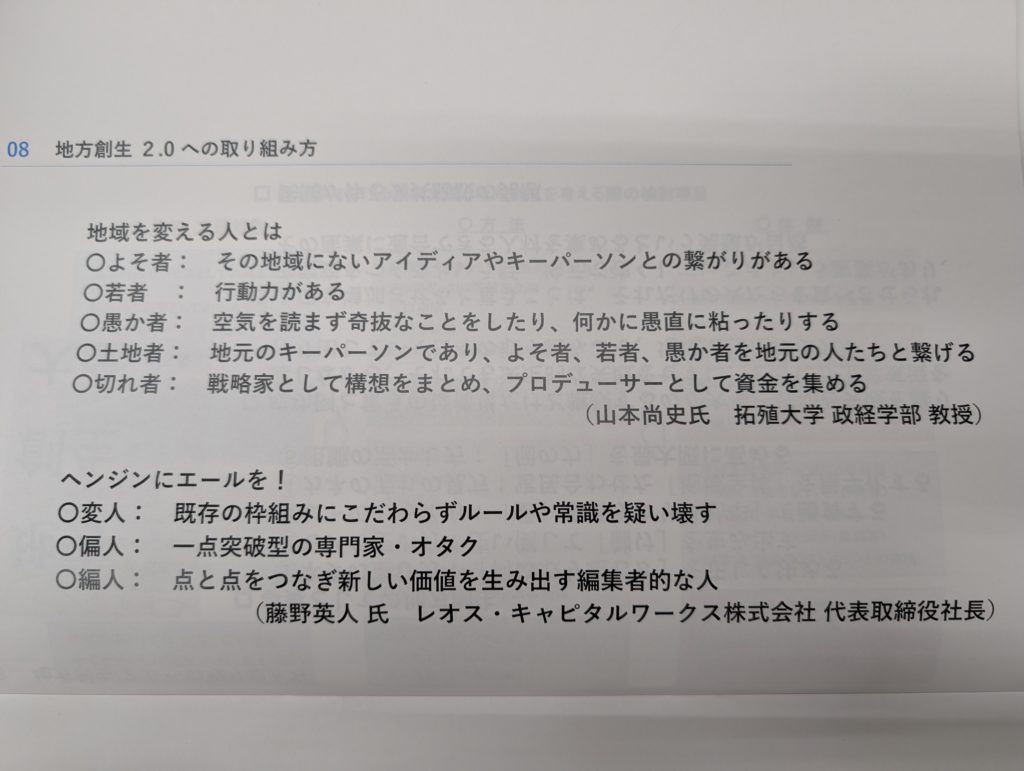 講師の石井さん。役人ぽい感じは一切なく、文章棒読み感もまったくなし。とても講演慣れされていて、様々な取り組みに従事されてきた経歴通り、起業家の先輩のような雰囲気。
