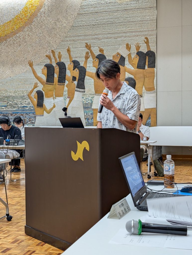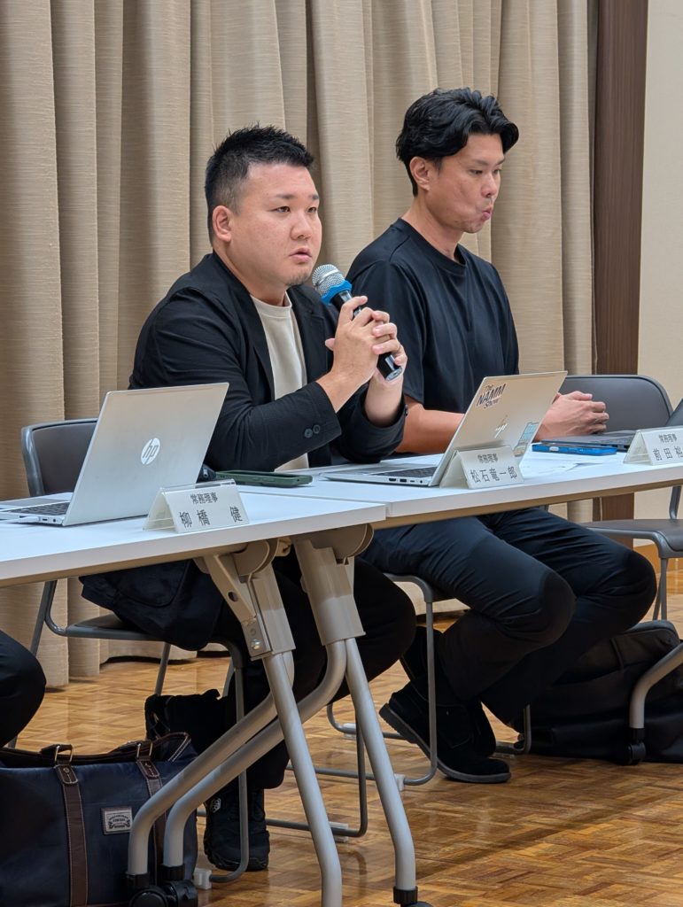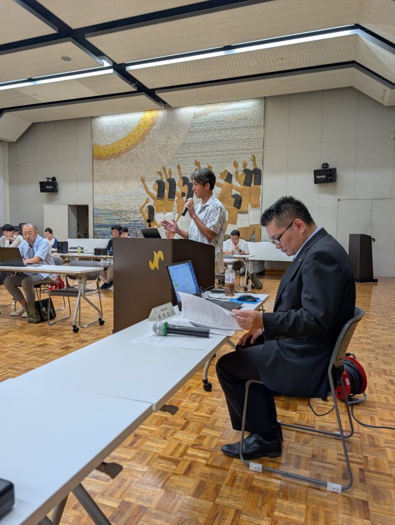 質問や意見が出た時にマイクランナーをしてくれるのは総務委員会のメンバーさん。なんと今日は修行から復帰したばかりのシュウヘイくんが来てくれてました!