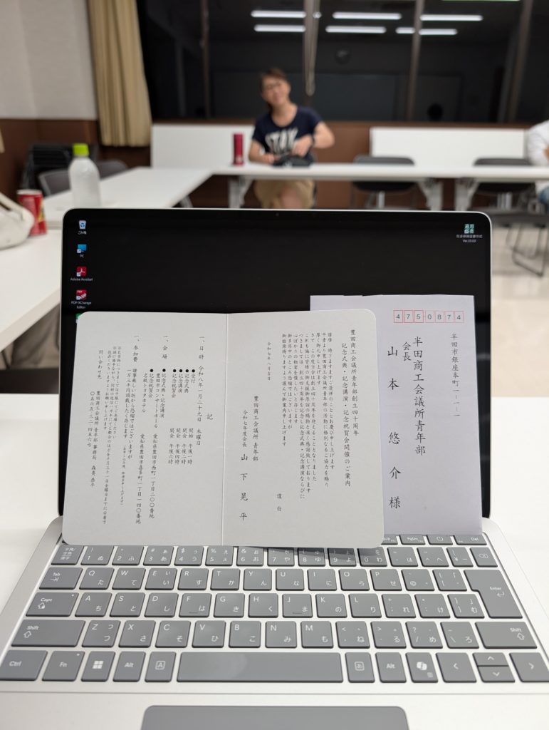 「え?またー?」と言うと「今日は違います」と(笑)。そう、立派な封筒に包まれていたのは豊田YEGさんの40周年記念式典招待状でした!