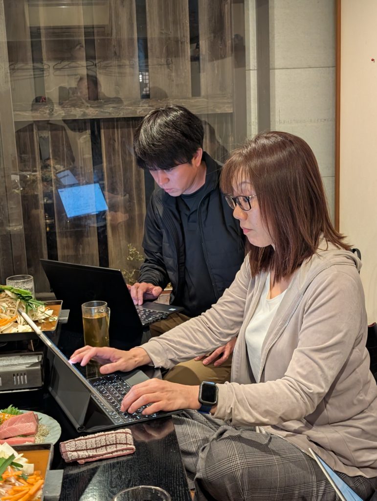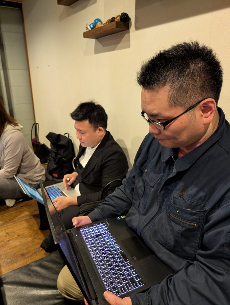 遅れてきたからやる気マンマンの千葉くんも、らんさんでもPC開いてる坪井くんもなんだかうれしい感じ(笑)