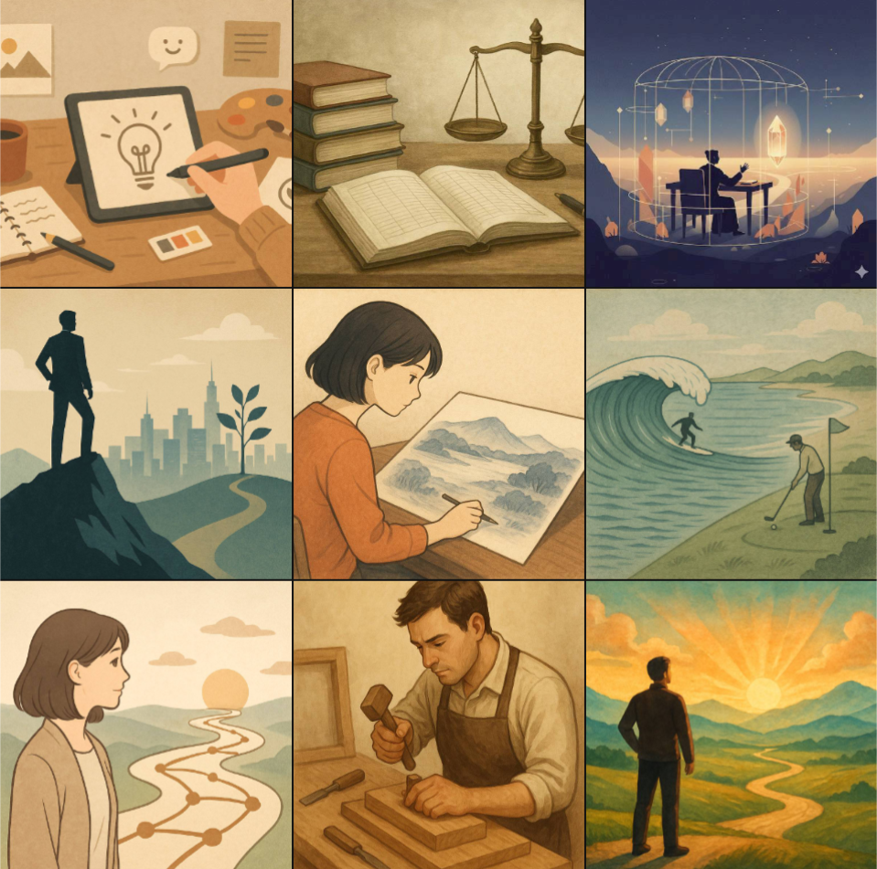 ②今選んだこの座右の銘をテーマに、イメージイラストを生成してください。・日本語の座右の銘の雰囲気が伝わる構図にする・人物を入れても入れなくてもよい・過剰にリアルすぎない・落ち着いた雰囲気で※ 座右の銘の文字は画像の中に入れないでください。