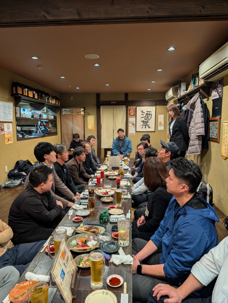 この後は懇親会場である「酒菜」さんへレッツゴーです!設営してくれたのは地域委員会の皆さん。副委員長の堀田くんの司会で始まります。
