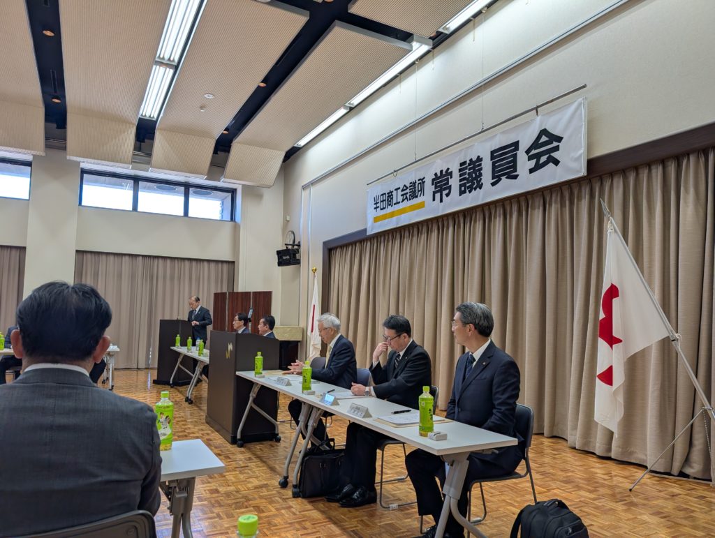 副会頭の前というまたまたいい席を準備してもらい、開会を待っているとナカミツ君が登場。彼も常議員会にはオブザーブ出席です。なんせ会議所活動について審議を諮りますので、職員の皆さんにとっては自身の仕事内容に直結します。