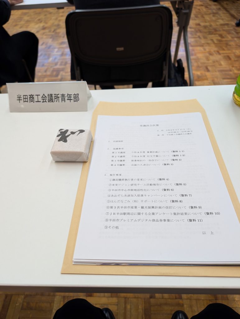 私は用意していただいたお茶を飲みながら次第の確認。まさかとは思いますが、たまに「青年部報告」みたいのが急にでてきて焦る時があるからです(笑)。で今回はセーフ。
