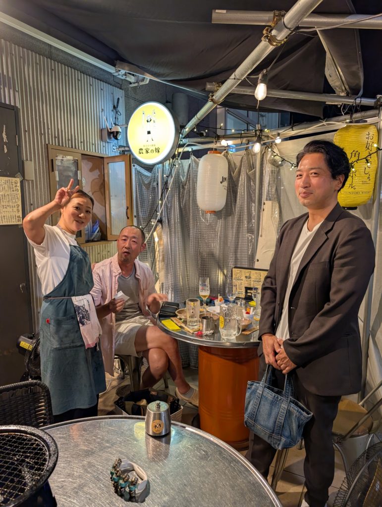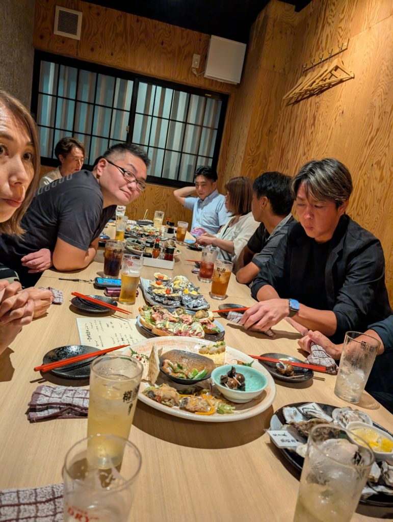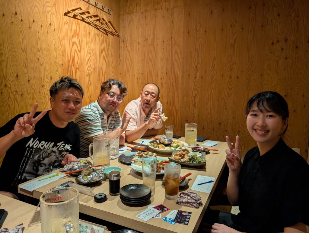 ここからは懇親会へ。皆さんに部屋の片付けはお願いして、タツオくんと二人で一足先に「おいすた」さんへアテンドします。