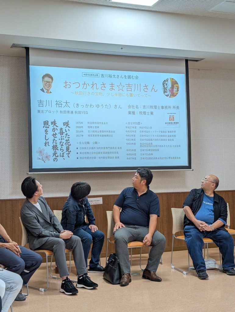 「また半田に寄ってこっかな」という吉川さんの一言から、どうせなら半田のみんなにも日本YEGの会長を務められた吉川さんとお話しする機会を提供したいと思いこのような会をお願いしました。