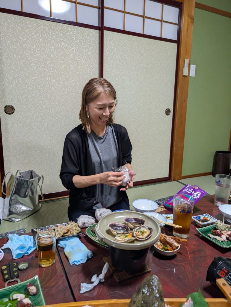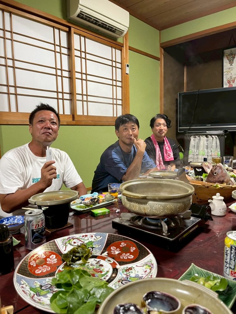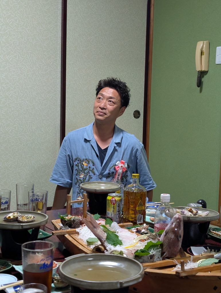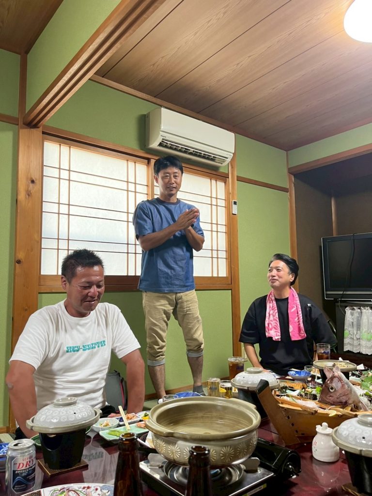 場所は篠島の民宿「妙子」さん。半田YEGメンバーで「炭火焼 感謝」を営むマサキくんの口利きで色々と対応してくれました。マサキくんありがとー!