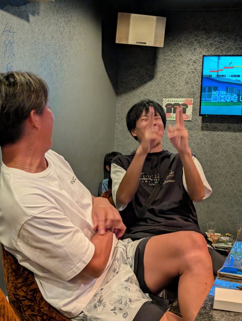 ここからはみなさんの想像通り。いつもの感じで盛り上がっていきました。頑なにアルコールを口にしないヤッチアニキ以外は(笑)。