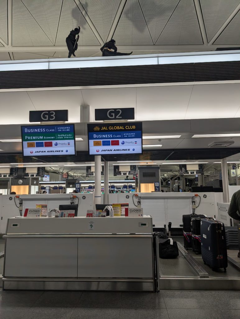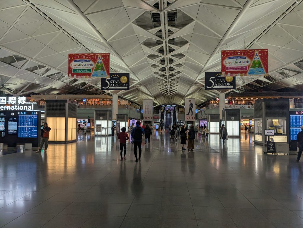 20:30頃出発の予定でしたので18:30くらいに空港に到着。どこもカウンターはガラガラでした。お客さんが少なくて皆さんも余裕があったのか、チェックインカウンターから保安検査場、機内スタッフさんまで対応が素晴らしく良くて、とってもいい気分で出発できました。