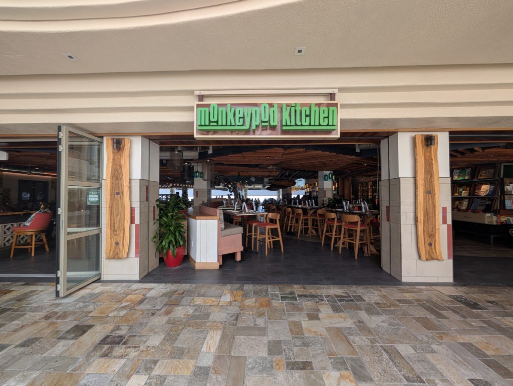そしてホテルのロビーで妻と合流して早速お昼ご飯へ。近くのアウトリガーホテルにある「モンキーポッドキッチン」へ。
