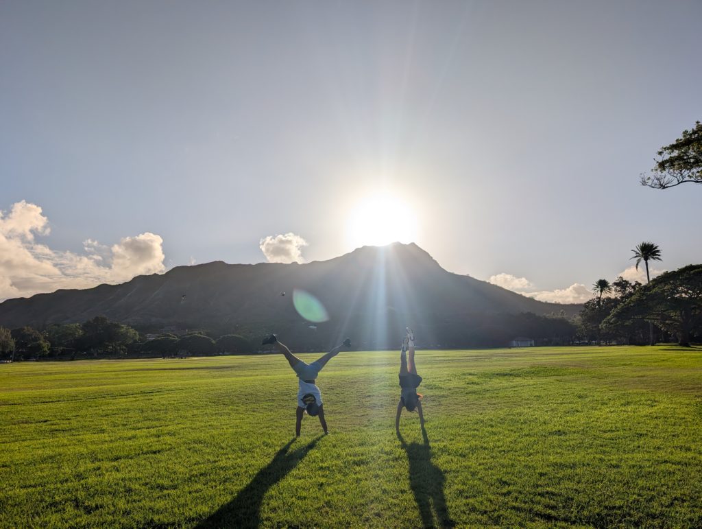 この公園は何があるってわけじゃないけど、ダイヤモンドヘッドをバックに写真が撮れる定番スポット(笑)。