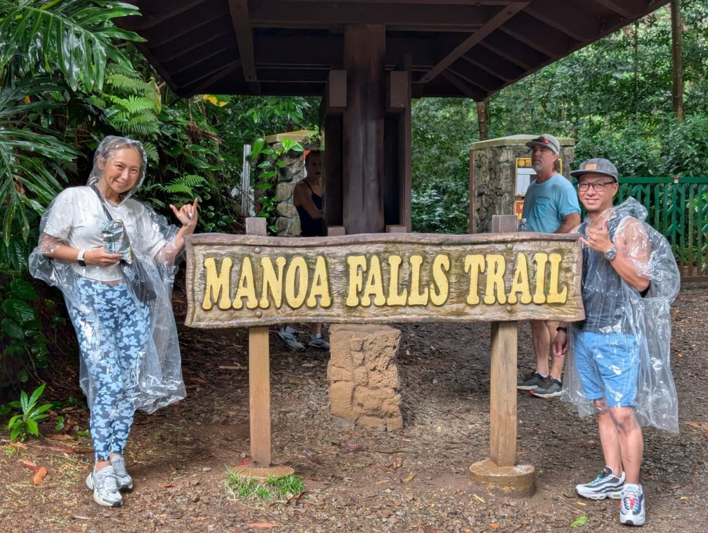 あれ?こんなもん?「雨だから水量が多いかもな!」なんて妻と歩きましたが、なんのこっちゃ(笑)。落差はたしかにありますが、少し前に行った「龍神の滝」がまぁまぁの迫力だったので「うん、マノアの滝。よくわかりました。」ということに(笑)。