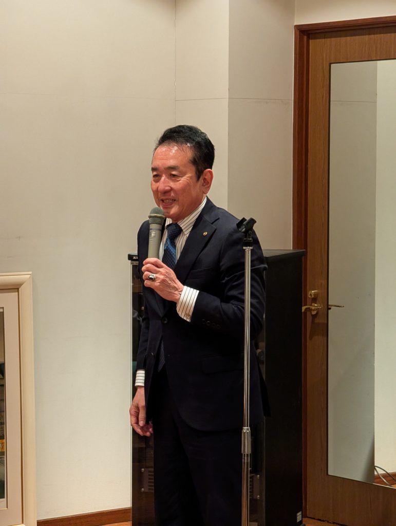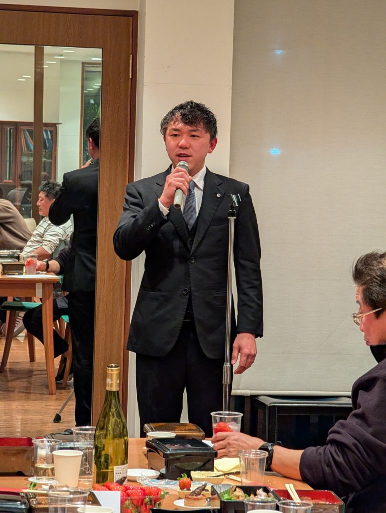 続いて歴代会長を代表して松石さんにご挨拶をお願いしました。2期目の会頭職も務められていて名実ともに我々のボスです。初の女性会長&女性専務となるけど期待しているよと温かいお言葉をいただきました。