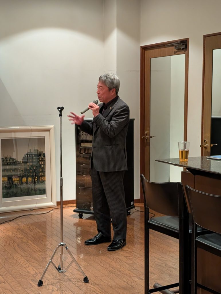 開始時刻の18:30となり、私の司会でスタートします。そう、この会の司会は毎年当該年度の会長。好きなように進行できるってことで楽しんで司会される方もいるんですよ。