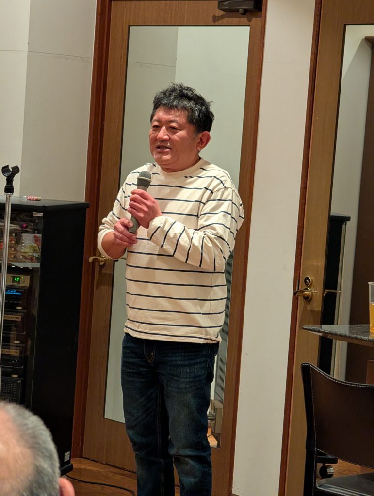 という感じで一人づつ挨拶させていただきました。もちろん私が写真撮ってるんですが、前で撮ってたり後ろで撮ってたりと歩き回ってるのがわかります。たしかにアツ君の下ネタ以外はみんなが何を話してたかわかんないもんな(笑)。