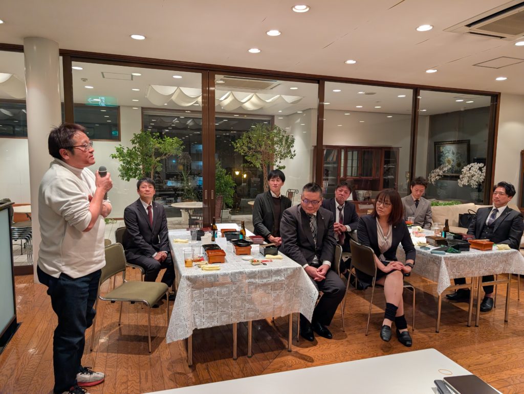 という感じで激励のお言葉をいただきました。先輩方ありがとうございました!で再度歓談としましたが「いい加減終われよ」っぽい雰囲気になってきたので中締めするか~ということに。